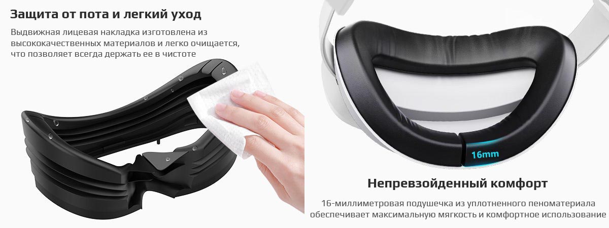 - Благодаря мягкой PU-коже, снижающей давление на лицо, обеспечивается длительное комфортное использование гарнитуры.