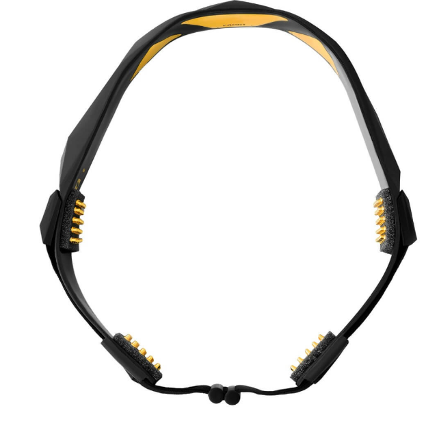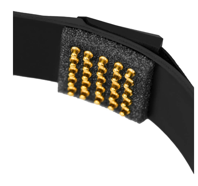Электроды покрыты золотом — это лучший способ сбора ЭЭГ среди сухих методов. Каждый из 4 каналов содержит 25 подпружиненных пинов, что обеспечивает большую площадь соприкосновения и устойчивый приём сигнала даже через волосы. Пины не ломаются, не трескаются и не давят на голову.