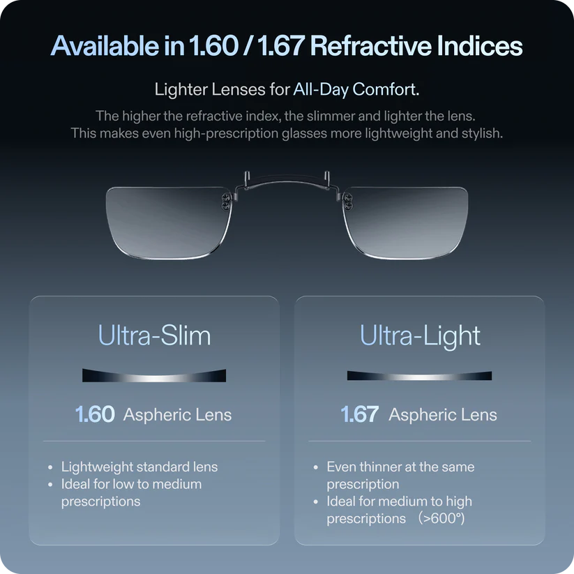 Конструкция XREAL One Pro разработана с учётом эргономики и баланса веса: линзы выполнены из ультралёгкого оптического пластика (обычно CR-39 или Trivex), что предотвращает перегрузку на переносицу и сохраняет комфорт даже при многочасовом использовании. Благодаря точной геометрии и минимальной толщине, они не нарушают оригинальный дизайн очков и не уменьшают поле зрения — вы получаете тот же имерсивный-опыт, что и пользователи без коррекции зрения.
