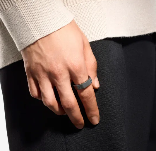 Корпус кольца изготовлен из комбинации циркониевой керамики и нержавеющей стали. Циркониевая керамика используется для тактильной управляющей поверхности — этот материал отличается высокой прочностью, гипоаллергенностью и приятными тактильными ощущениями. Форма Crown Shape (выпуклый профиль) обеспечивает комфорт при длительном ношении.