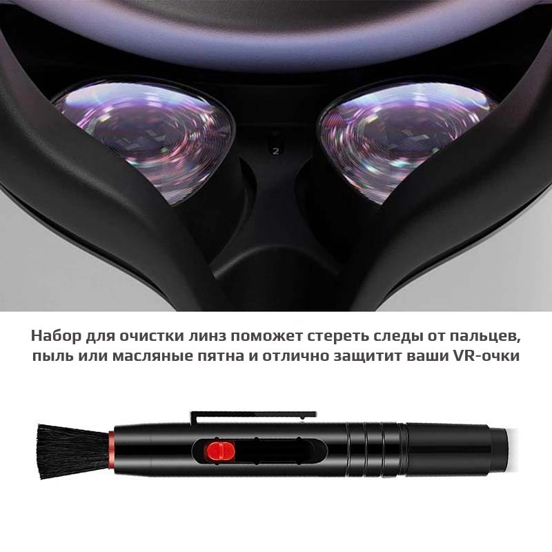 — страна производстваКупив устройство для очистки линз (Cleaning Pen) 2 в 1 с угольным наконечником, вы легко сотрете следы от пальцев, пыль и жирные пятна и обеспечите защиту своих устройств виртуальной реальности.Теперь во время игры вы будете развлекаться, не боясь повредить линзы своей техники.