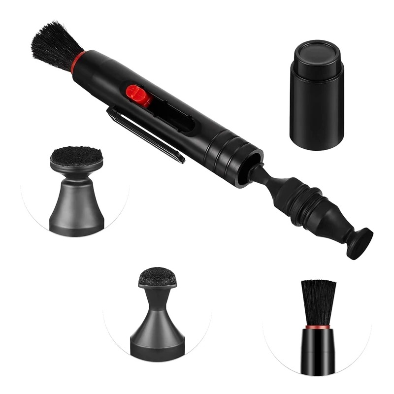 В процессе очистки вам сначала нужно использовать наконечник для обеспыливания и смахнуть оставшуюся пыль мягкой щеточкой. Затем вы можете использовать другую сторону устройства, чтобы стереть следы от пальцев и протереть линзу тканью.