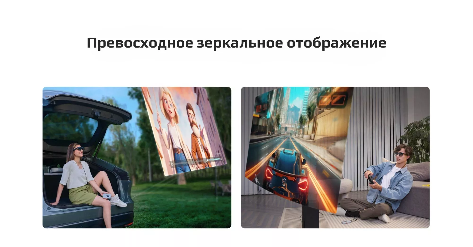 - Возможность настройки размера виртуального дисплея до 330 дюймов везде, где бы вы ни находились.