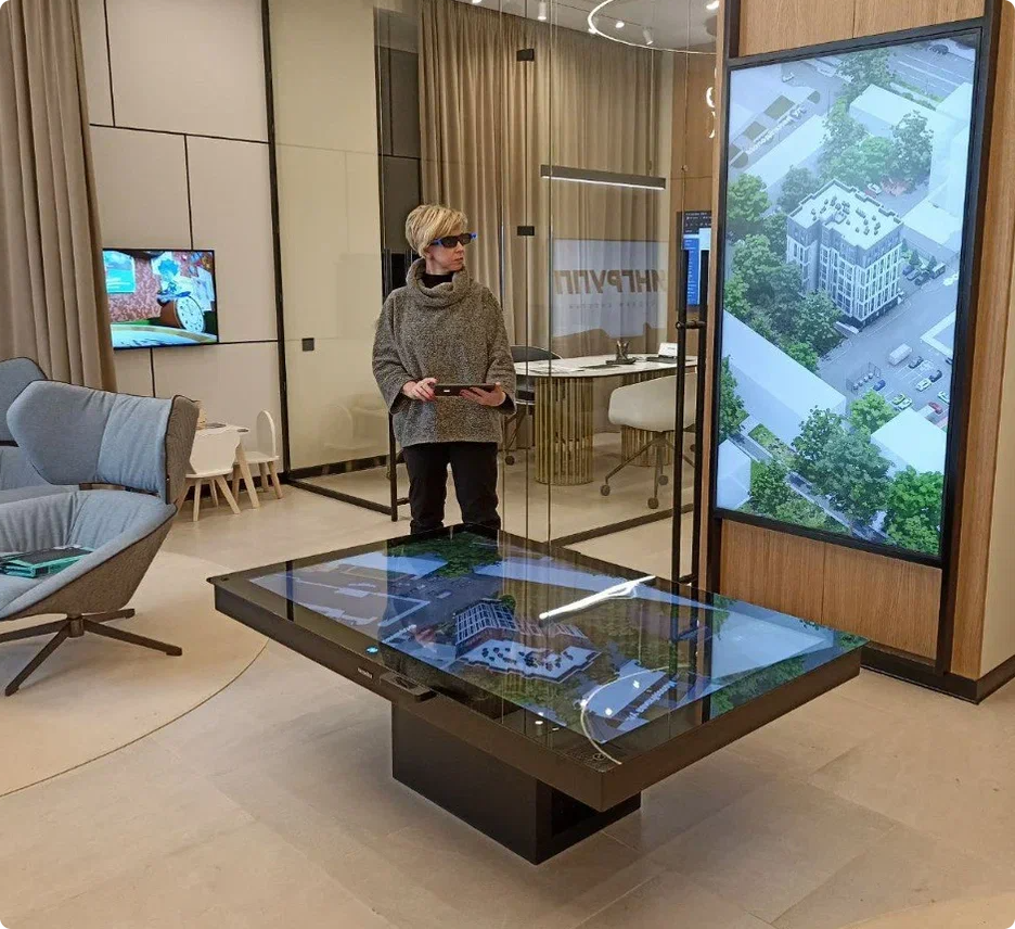 Сферы применения: • Архитектурная визуализация и презентация девелоперских проектов • Инженерное проектирование и прототипирование сложных систем • Медицинская визуализация анатомических структур и планирование операций • Образовательные программы в технических и медицинских вузах • Научные исследования и визуализация данных • Интерактивные музеи и выставочные экспозиции • Корпоративные презентации и демонстрации продуктов • Военные и аварийно-спасательные учения