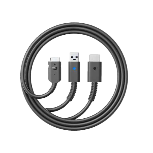 Фирменный кабель для соединения шлема виртуальной реальности Oculus Rift CV1 с ПК. Поставляется в отдельной коробке и является оригинальным аксессуаром компании Oculus.