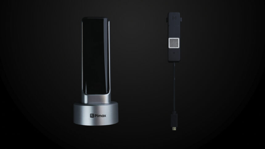 Не стоит проходить мимо и беспроводного модуля Pimax 60G Airlink, который также был показан в рамках выставки высоких технологий Frontier 2024. Устройство в стильном корпусе объединяет два элемента – передатчик и приемник. Отдельно предусмотрен «ключ», вставляемый в HDMI-разъем.