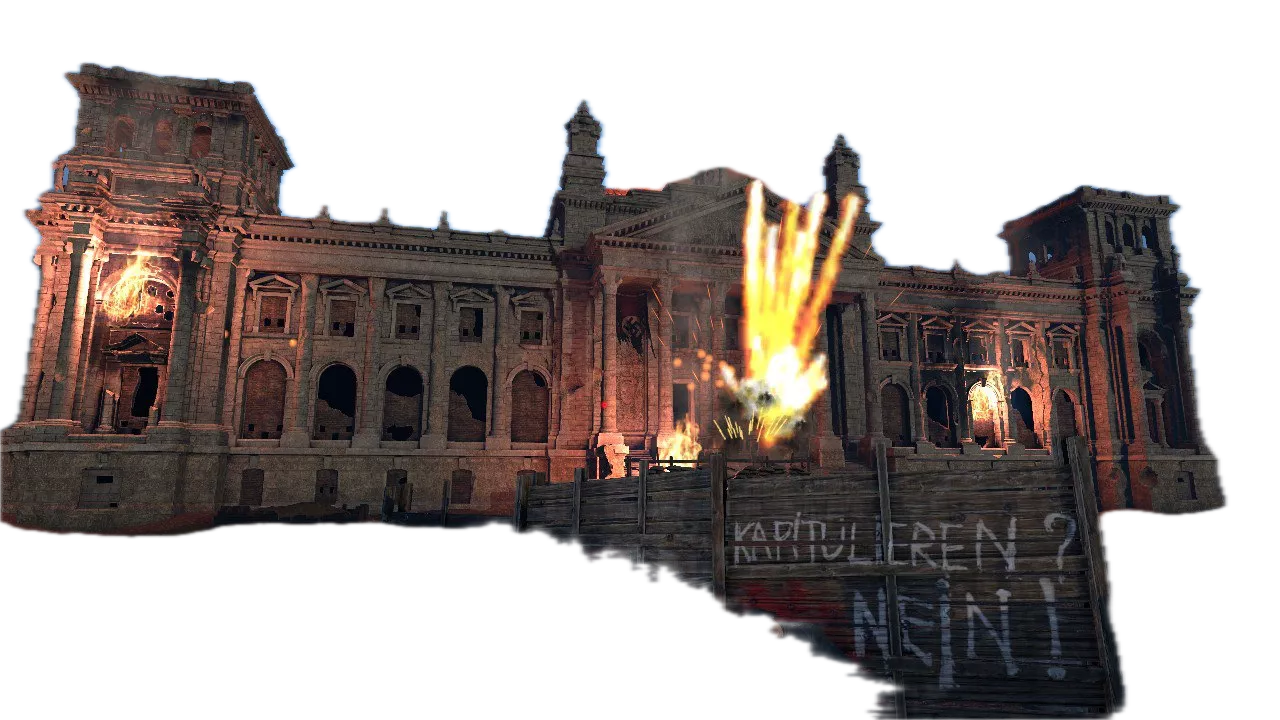 Рейхстаг – здание немецкого парламента, которое представляло собой настоящую крепость. Окна и двери здания были заложены красным кирпичом, а для ведения пулемётного огня в кладке были оставлены амбразуры. С севера на юг площадь перед Рейхстагом пересекал котлован линии метро, заполненный водой.