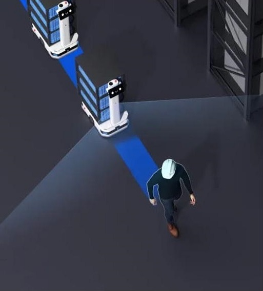 Робот обнаруживает препятствия на уровне пола и над ним, считывает линии безопасности и корректно реагирует на любые потенциальные риски, что делает его безопасным для совместной работы с персоналом.