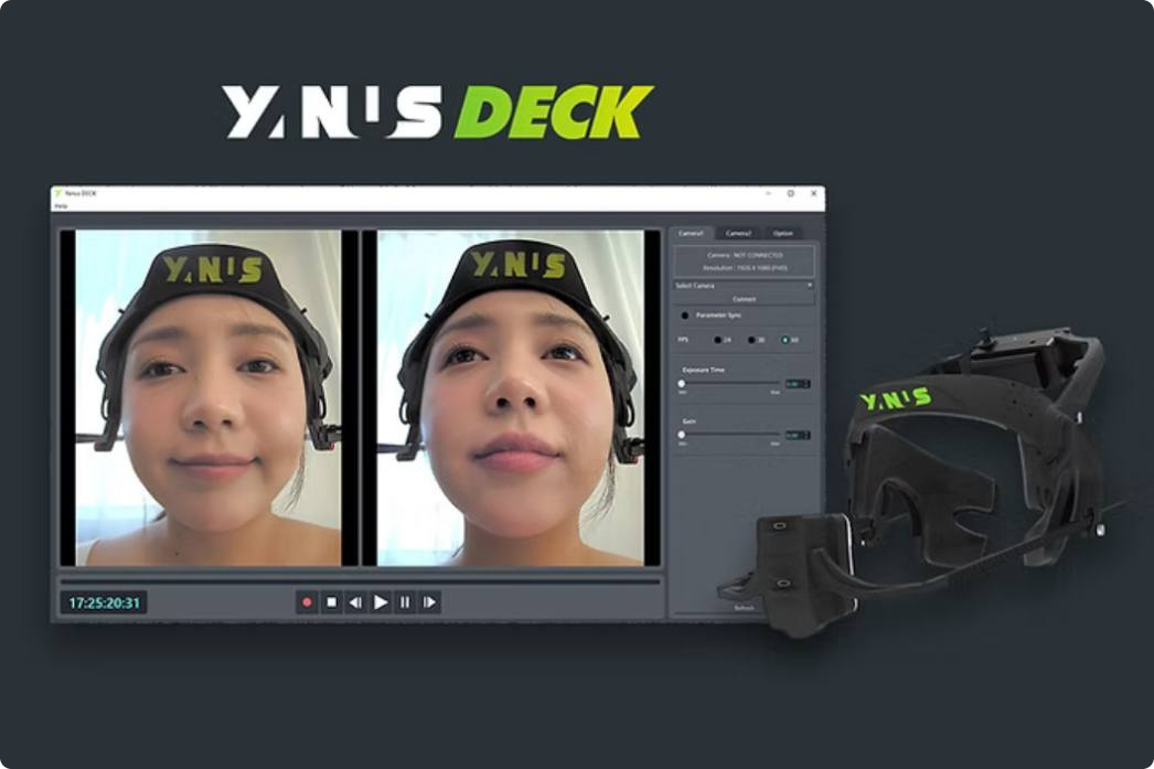 YanusCAM Dual — это профессиональная головная система захвата мимики, разработанная для создания высокоточных анимаций лиц в реальном времени. Устройство оснащено двумя синхронизированными HD-камерами с частотой 60 кадров в секунду, что позволяет точно отслеживать даже самые быстрые движения — от моргания до тонкой артикуляции губ.