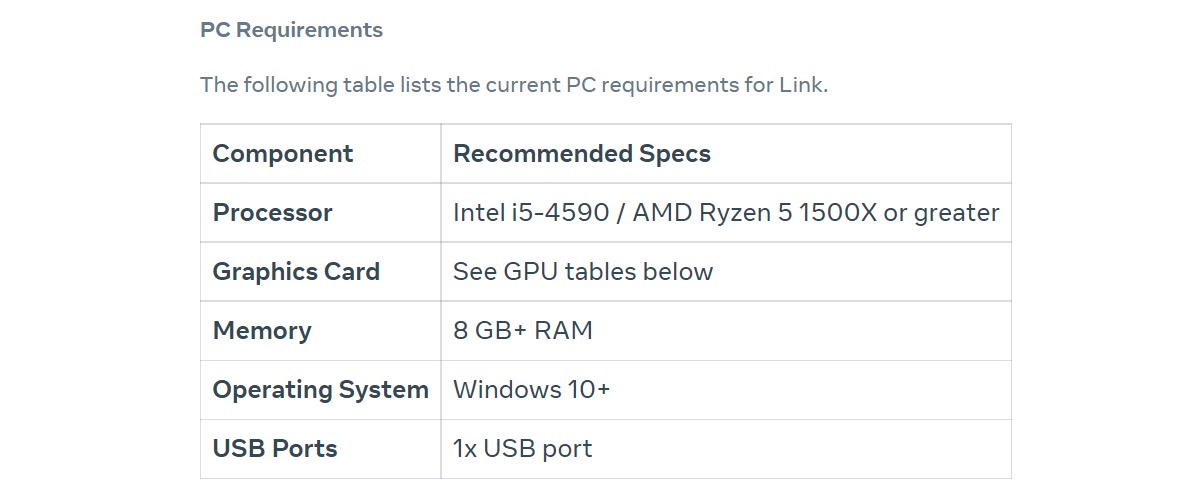 Необходимо отметить, что требования к спецификациям изменяются, что зависит от самой игры. Известны приложения для компьютеров с использованием виртуальной технологии и более серьезными характеристиками. При этом на страничке совместимости Oculus Link легко определить, отвечает ли ПК важным требованиям данной технологии. Однако следует помнить, что страница предоставляет информацию для проводного соединения технологии. Такой вариант является оптимальным для проверки своего ПК и уточнения, подходит ли он для VR и AirLink.