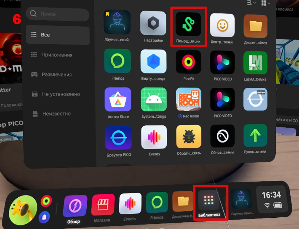 - Наденьте шлем и отройте библиотеку и с приложениями. Включите «Помощник трансляции». У вас отобразятся все доступные компьютеры для подключения (если эта задача не выполнена, подключитесь повторно);