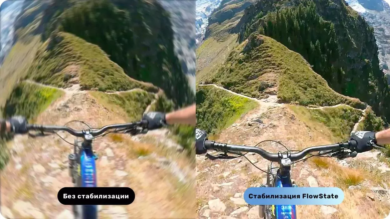 Благодаря технологии FlowState вам не нужно использовать дополнительные устройства, которые позволяют стабилизировать положение кадра. Достаточно обычной селфи-палки или крепления.