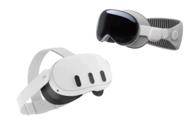 - Apple Vision Pro. Премиальный шлем смешанной реальности с микро-OLED дисплеями 4K на глаз, трекинг глаз и рук.